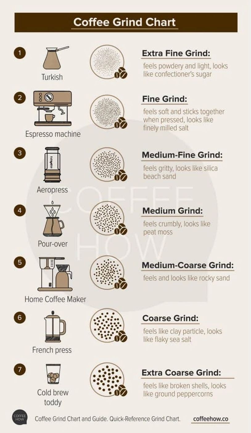 Different brewing methods require different grind sizes. To get the best results, refer to our guide below for the optimal grind size for your preferred brewing method.
