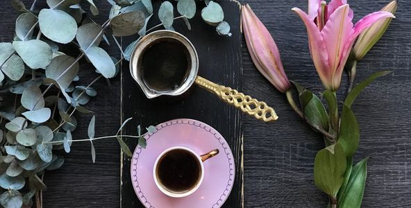 Use lavender infused sugar to bring a little flavor to your Kahve. Serve with macaroons and share with someone you love.